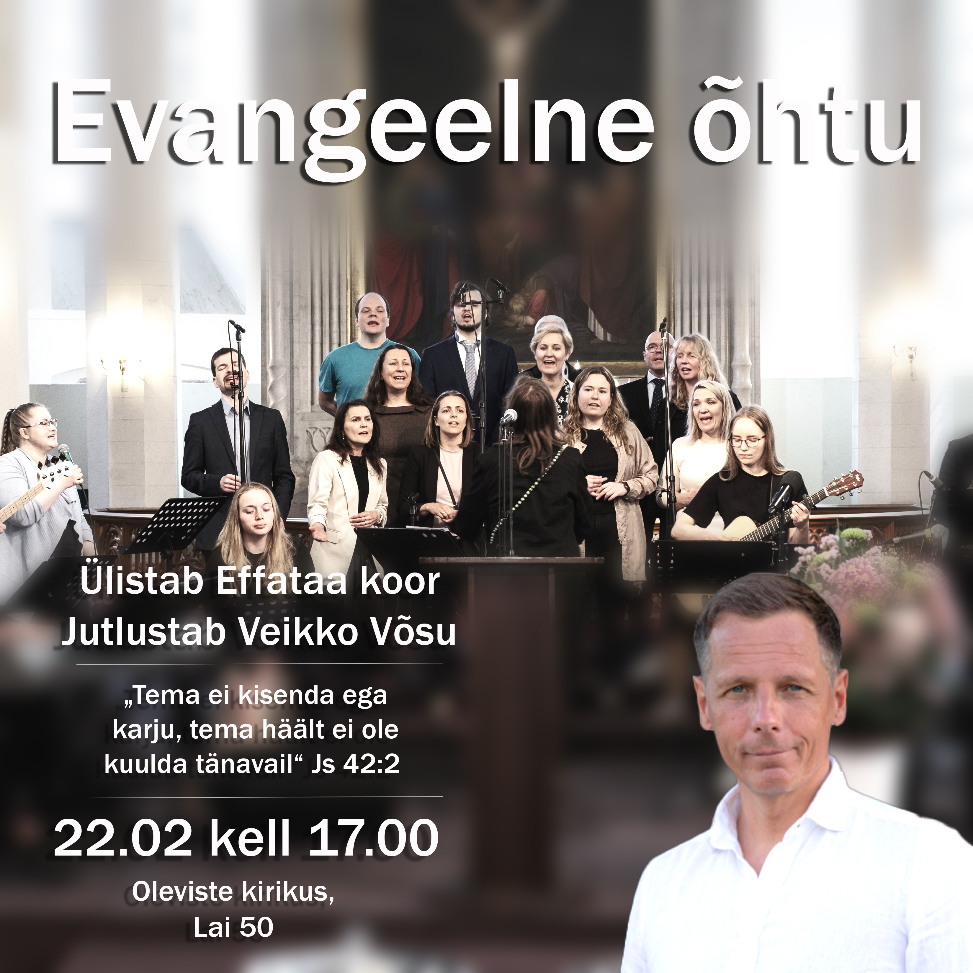 Evangeelset sõnumit jagab pastor Veikko Võsu Nõmme baptistikogudusest. Muusikaga teenib Oleviste koguduse Effataa koor. Õhtut juhatab vanempastor Veljo Kaptein.